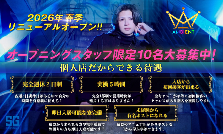 新生アンビエント始動!!2026年リニューアルオープンの為、 限定10名大募集中!! ▼体験料最大 30,000円支給!!▼